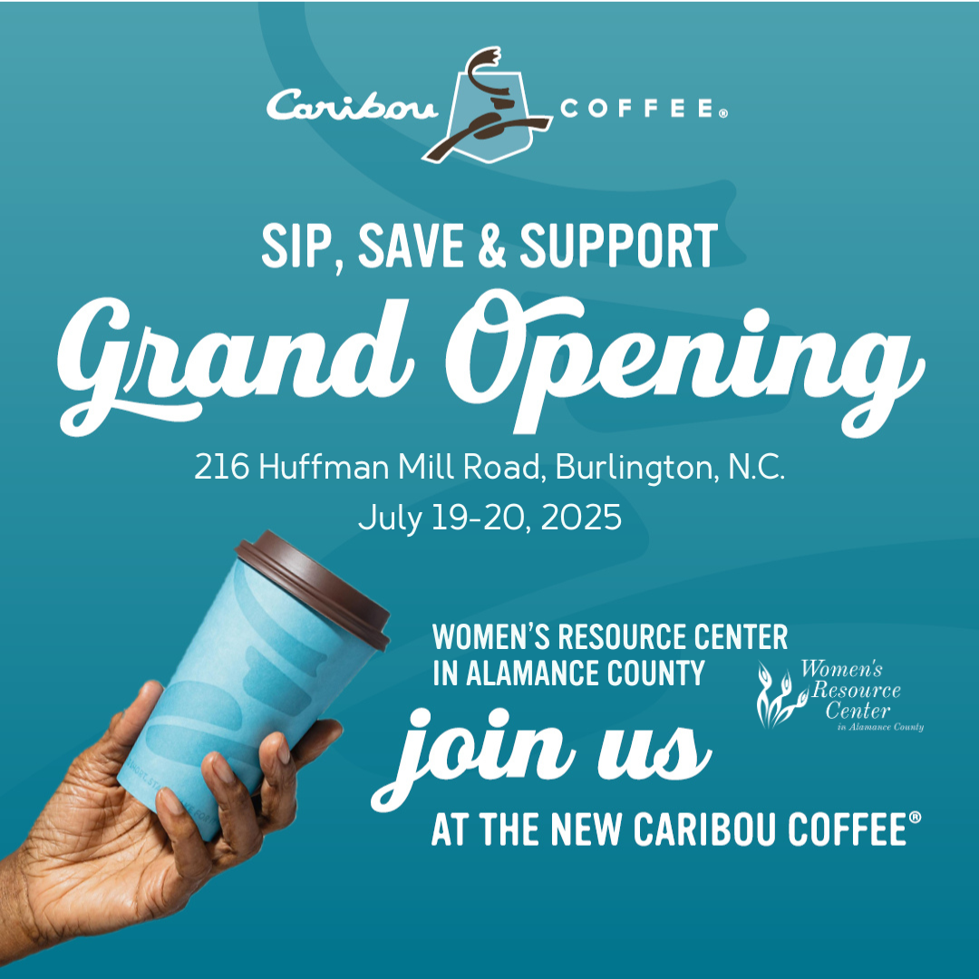 For every transaction during grand opening weekend, Saturday & Sunday, July 19-20, Caribou Coffee will donate $1 to Women’s Resource Center in Alamance County to support WRCAC’s mission: We empower women to improve and enrich their lives, supporting them through life transitions with life design tools to achieve stability, self-sufficiency, and success. When women succeed, communities THRIVE!